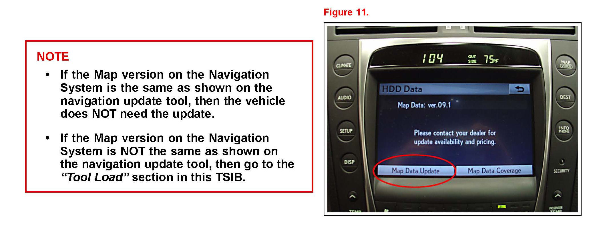 4. Compare the Map Data version on the Navigation System to that on the Navigation Update Tool.