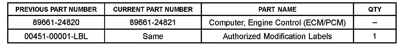 ^ Authorized Modification Labels may be ordered in packages of 25 from the Materials Distribution Center (MDC) through Dealer Daily - Dealer Support Materials Orders.