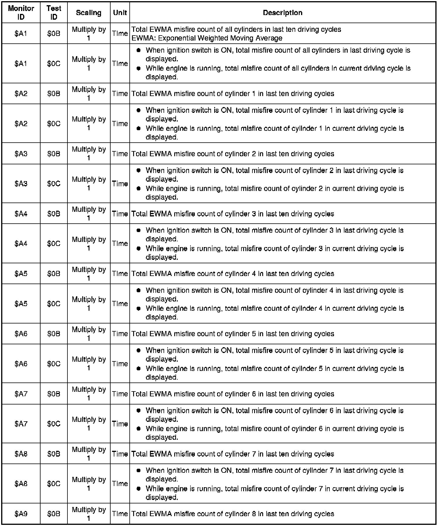 If you use a generic scan tool, multiply the test value by the scaling value listed below.