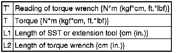(1) Use the formula below to calculate special torque values for situations where SST or an extension tool is combined with a torque wrench.