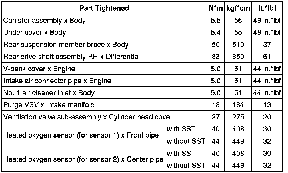 SERVICE SPECIFICATIONS: 3UZ-FE EMISSION CONTROL: TORQUE SPECIFICATIONS