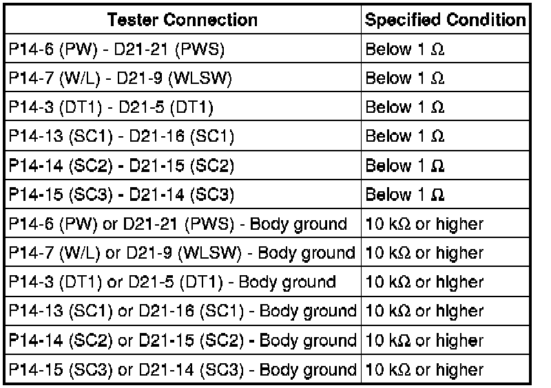 (a) Disconnect the D21 and P41 ECU connectors.