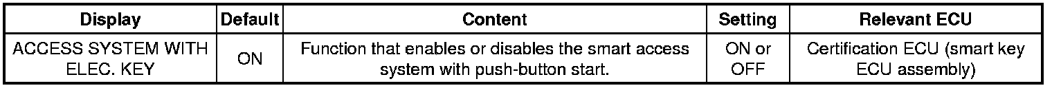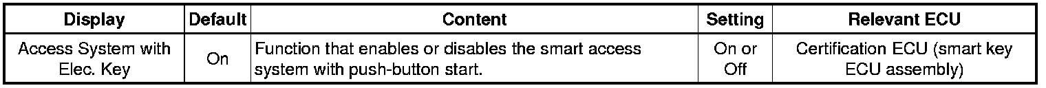 (1) The following functions are disabled when the smart access system with push-button start is canceled.