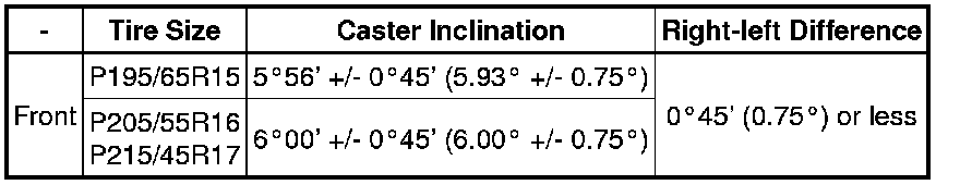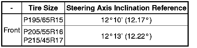 Steering Axis Inclination (Unloaded Vehicle)