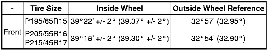 Wheel Turning Angle (Unloaded Vehicle)