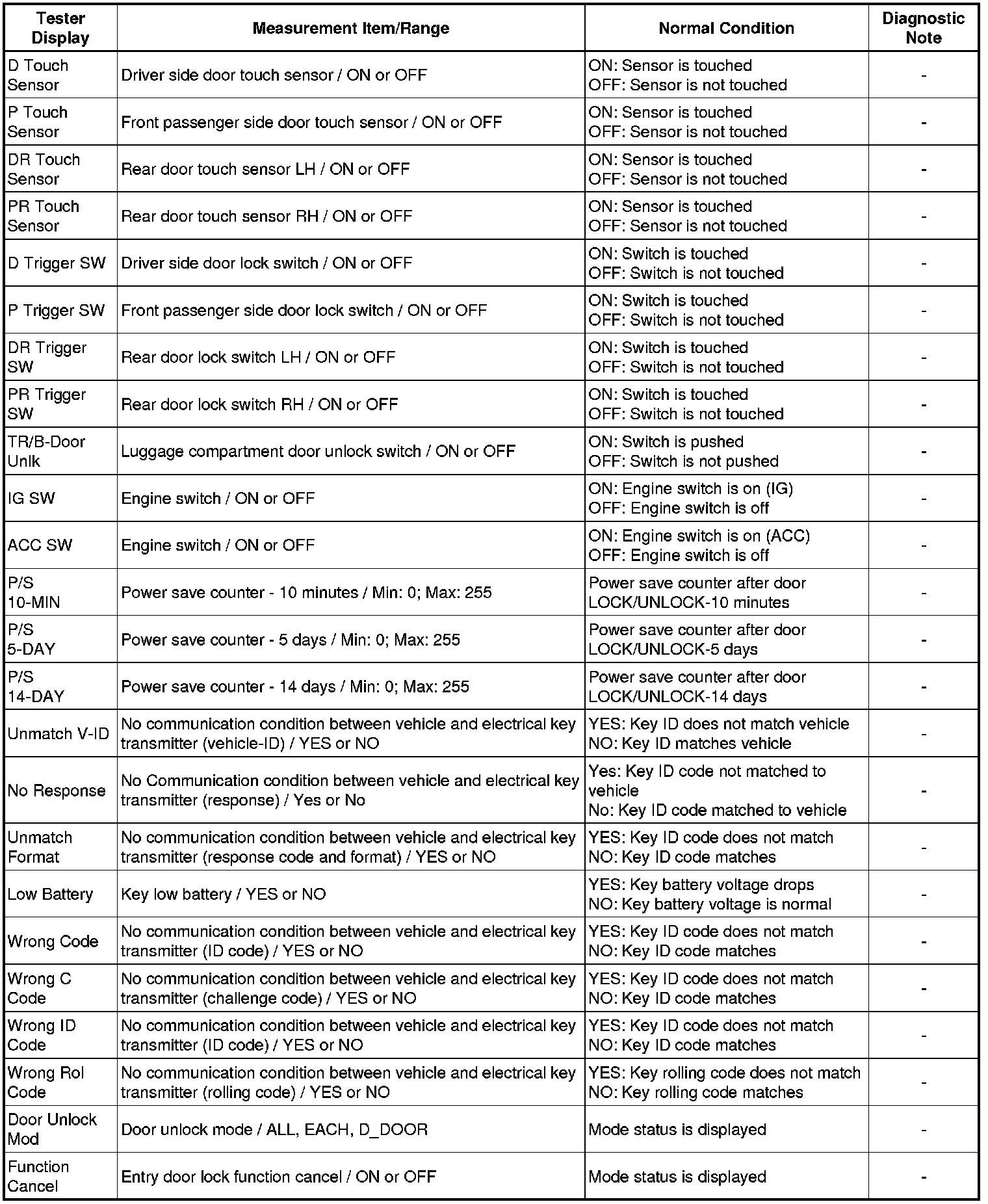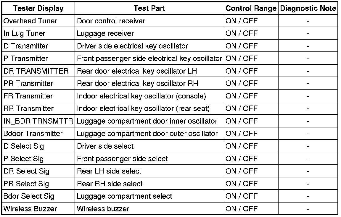 DOOR LOCK: SMART ACCESS SYSTEM WITH PUSH-BUTTON START: DATA LIST / ACTIVE TEST
