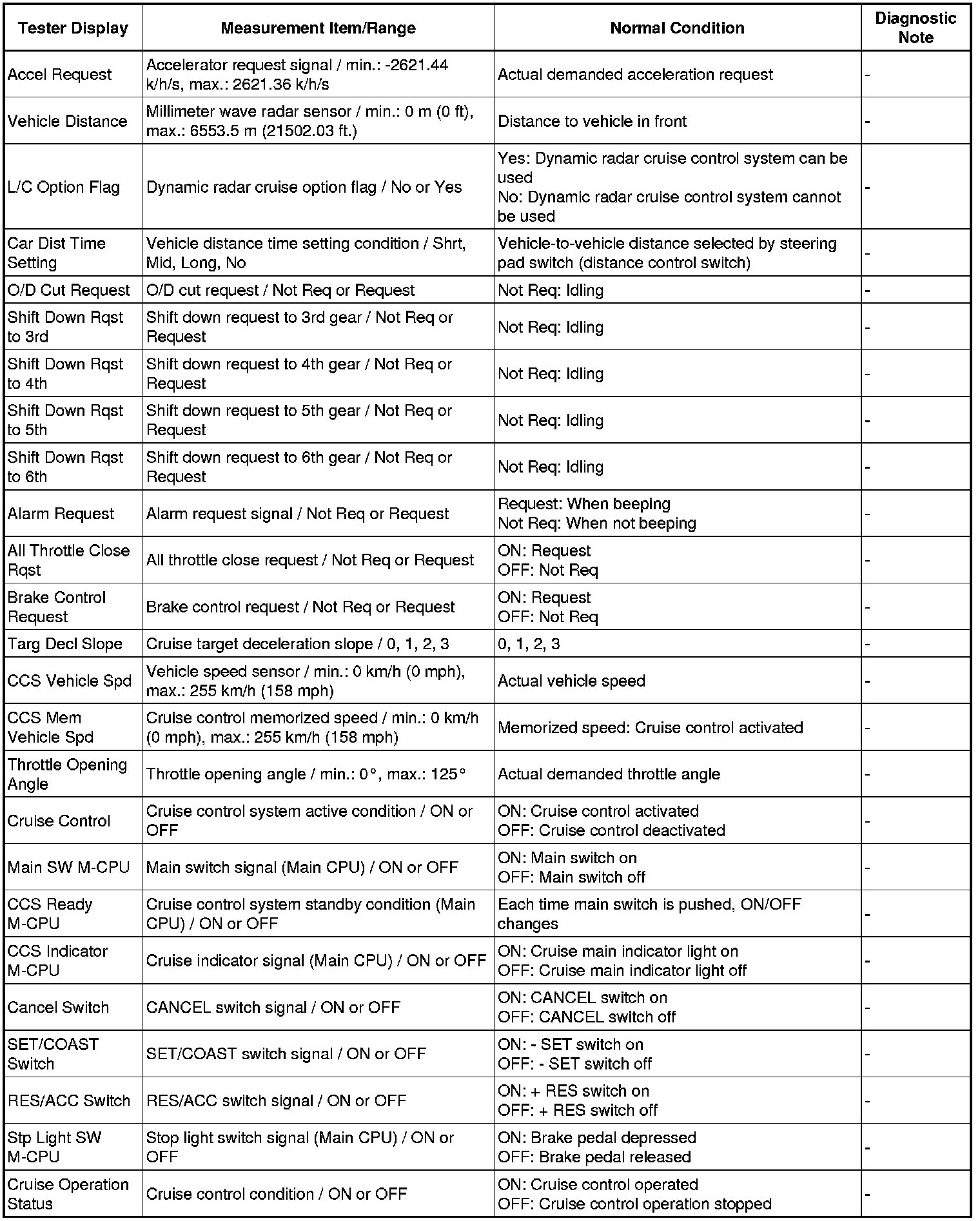 CRUISE CONTROL: DYNAMIC RADAR CRUISE CONTROL SYSTEM: DATA LIST / ACTIVE TEST