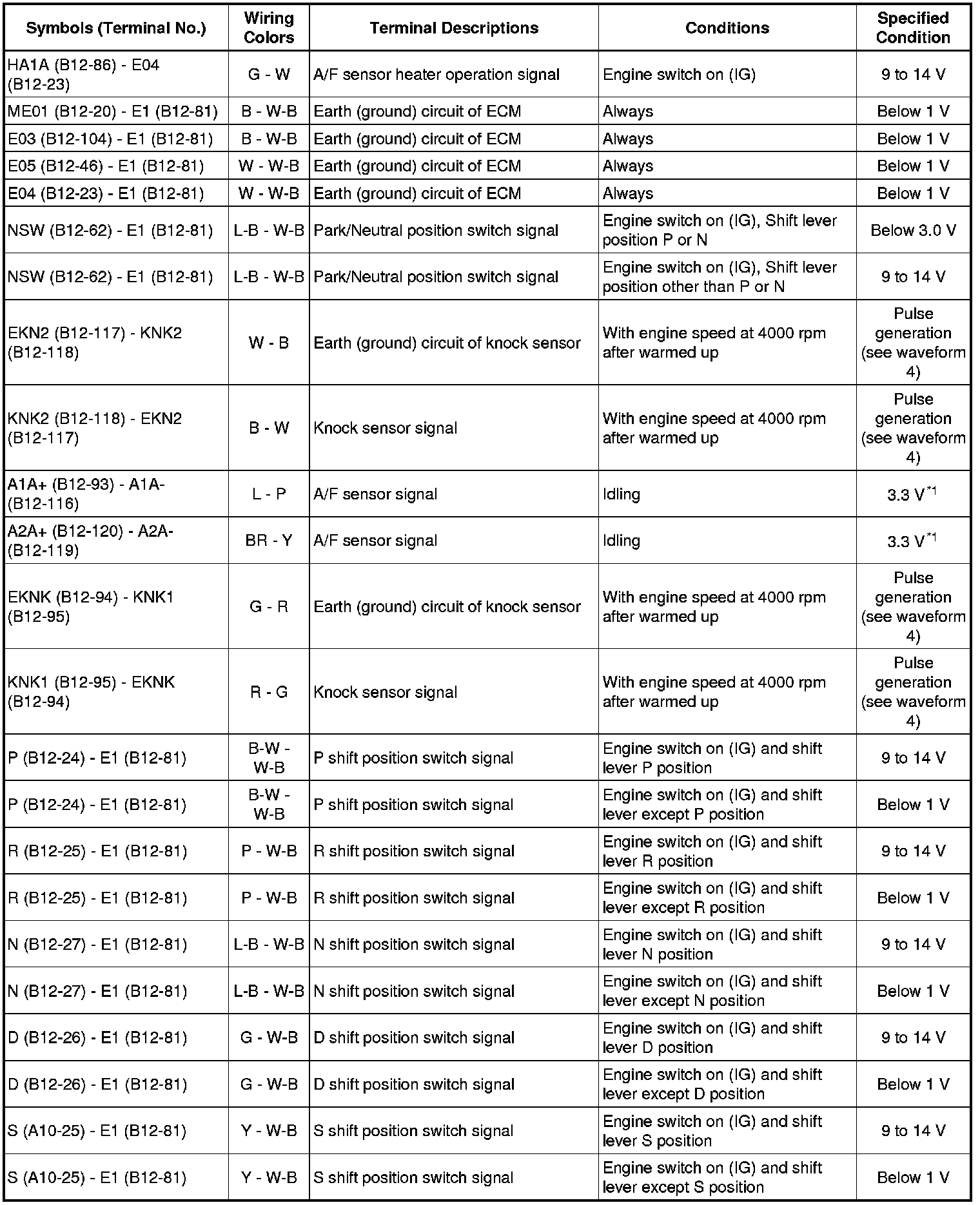 * Depending on the vehicle, the output waveform voltage may rise to 12 V if influenced by optionally installed systems.