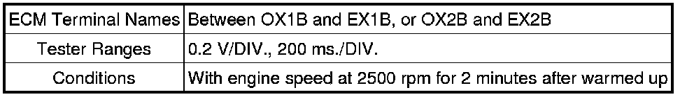 If the waveform is not similar to that shown in the illustration, check the waveform again after idling for 10 minutes or more.