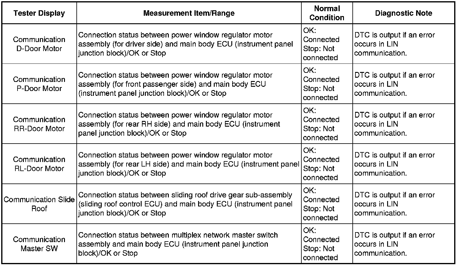 MULTIPLEX COMMUNICATION: LIN COMMUNICATION SYSTEM: DATA LIST / ACTIVE TEST