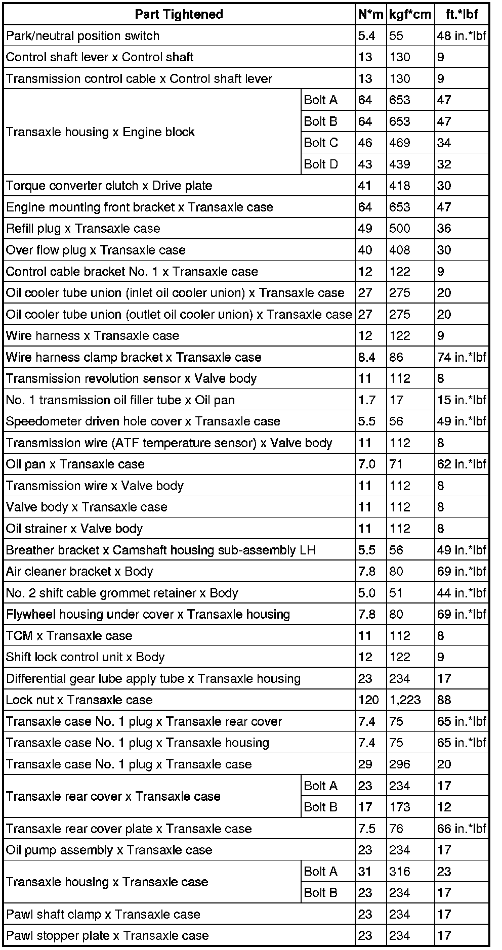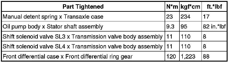 SERVICE SPECIFICATIONS: U660E AUTOMATIC TRANSAXLE: TORQUE SPECIFICATIONS
