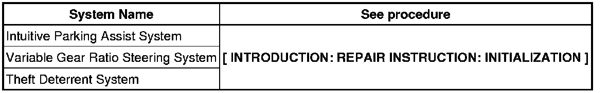 When disconnecting the cable from the negative (-) battery terminal, initialize the following system after the cable is reconnected.