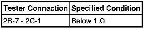 (2) Connect the battery's positive (+) lead to terminal 2A-8 and negative (-) lead to terminal 2B-3. Measure the resistance between terminals 2B-7 and 2C-1 when battery voltage is applied between the terminals.
