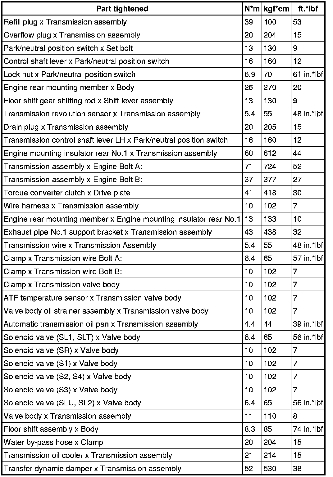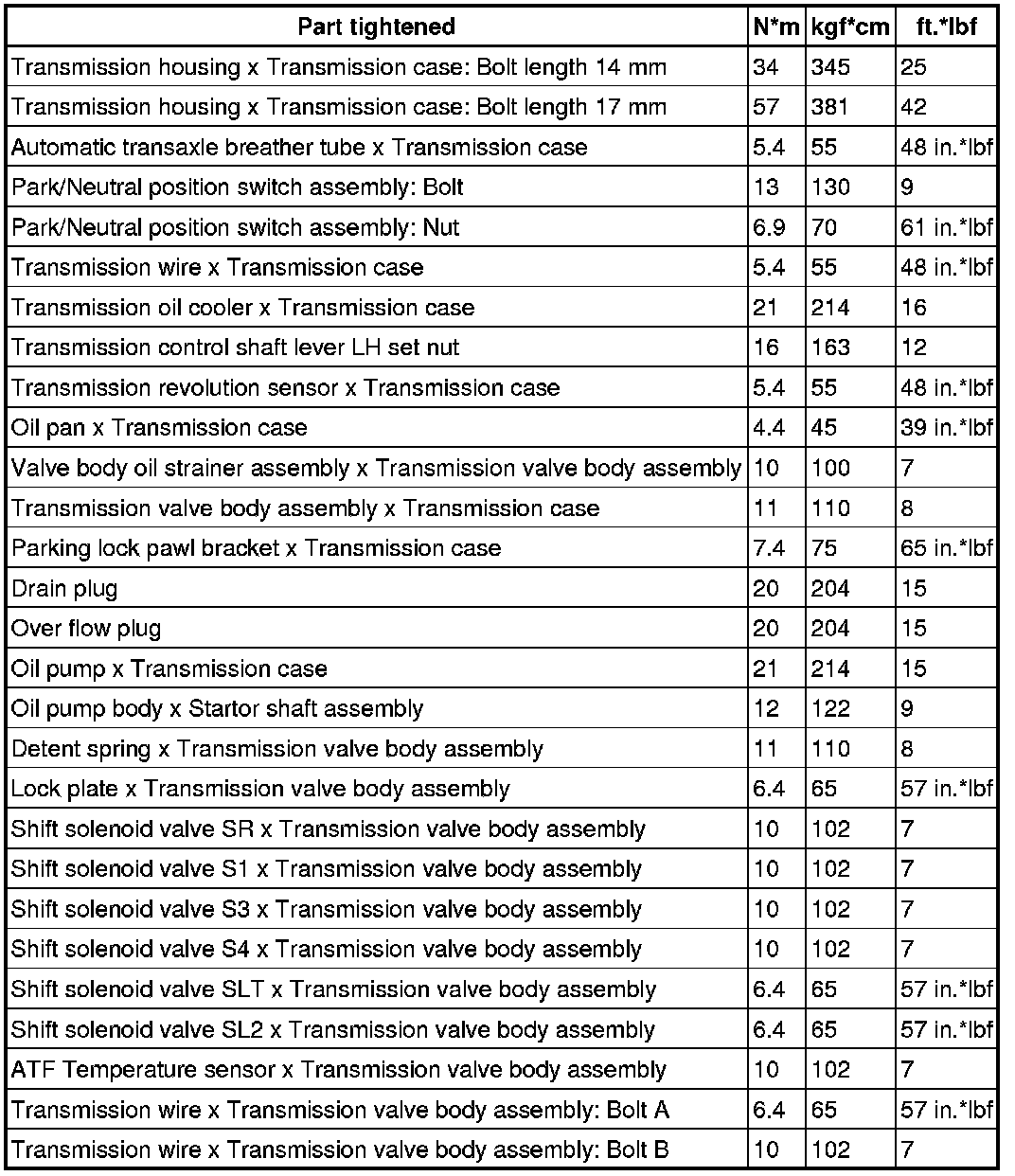 SERVICE SPECIFICATIONS: A760H AUTOMATIC TRANSMISSION: TORQUE SPECIFICATIONS
