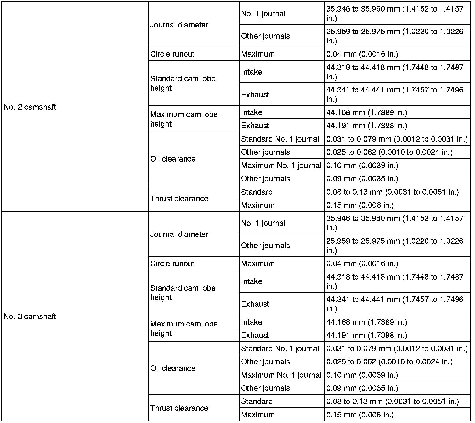 SERVICE SPECIFICATIONS: 2GR-FSE ENGINE MECHANICAL: SERVICE DATA