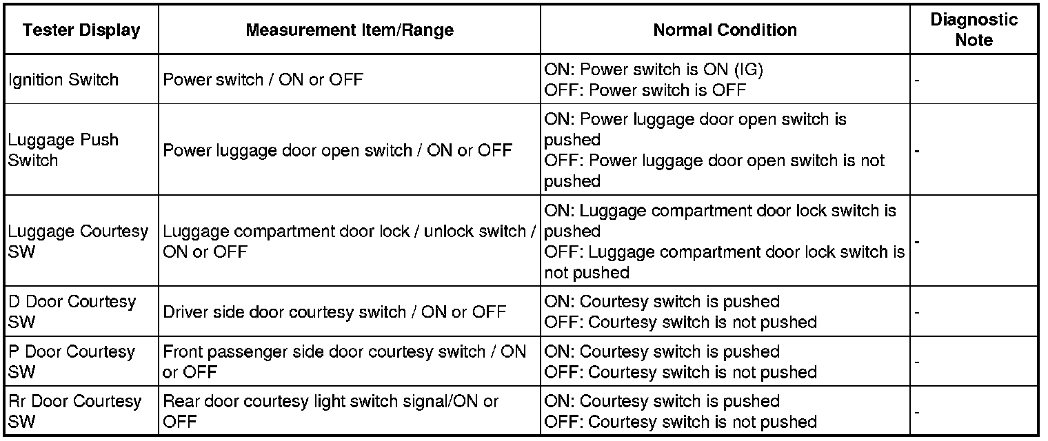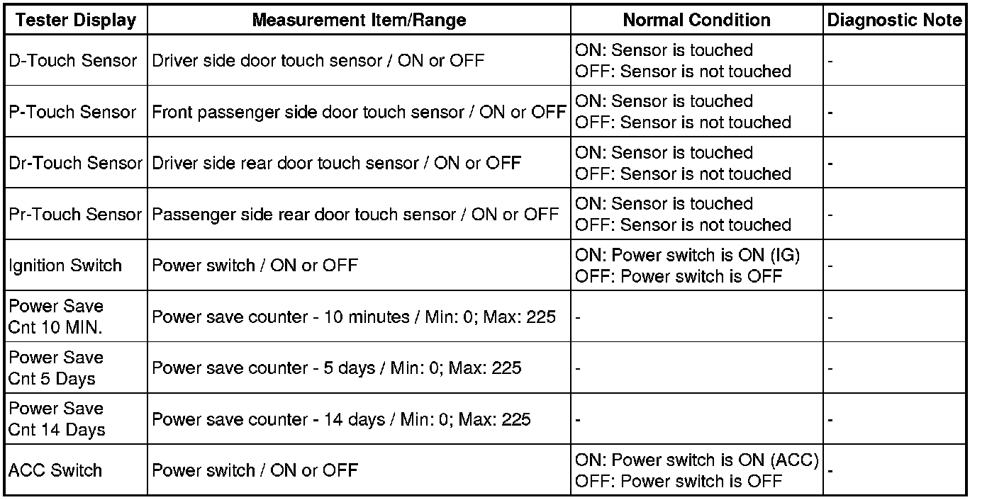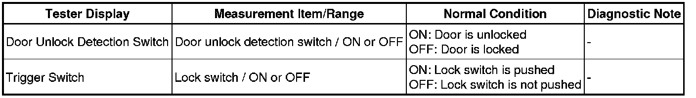 DOOR LOCK: SMART ACCESS SYSTEM WITH PUSH-BUTTON START: DATA LIST / ACTIVE TEST