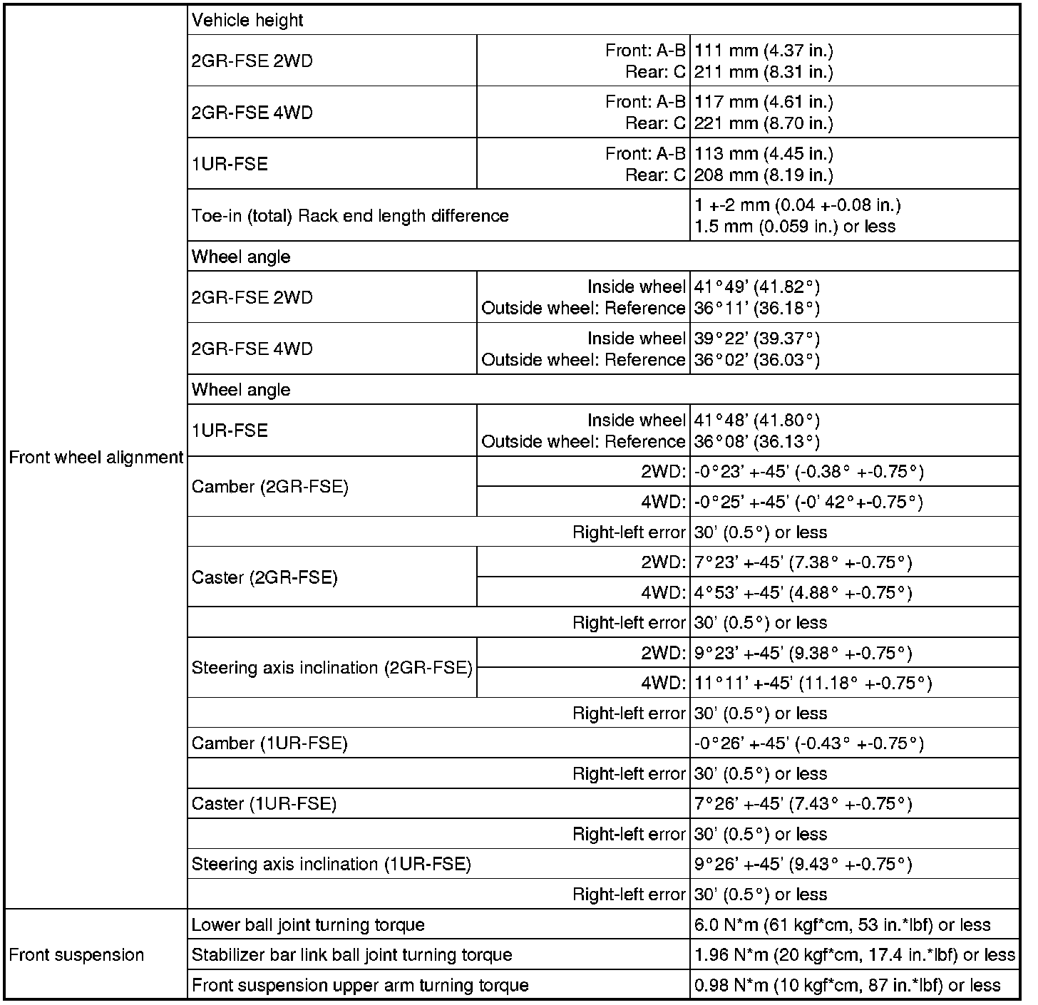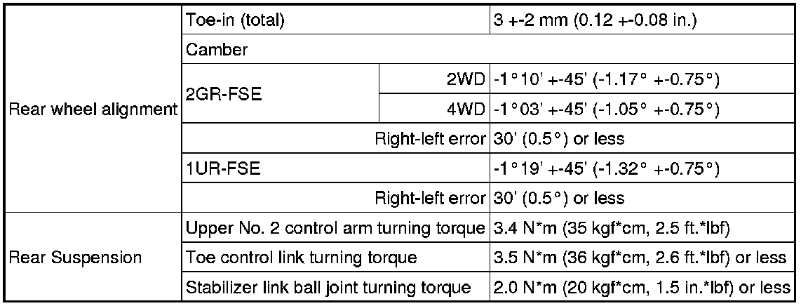 SERVICE SPECIFICATIONS: SUSPENSION: SERVICE DATA