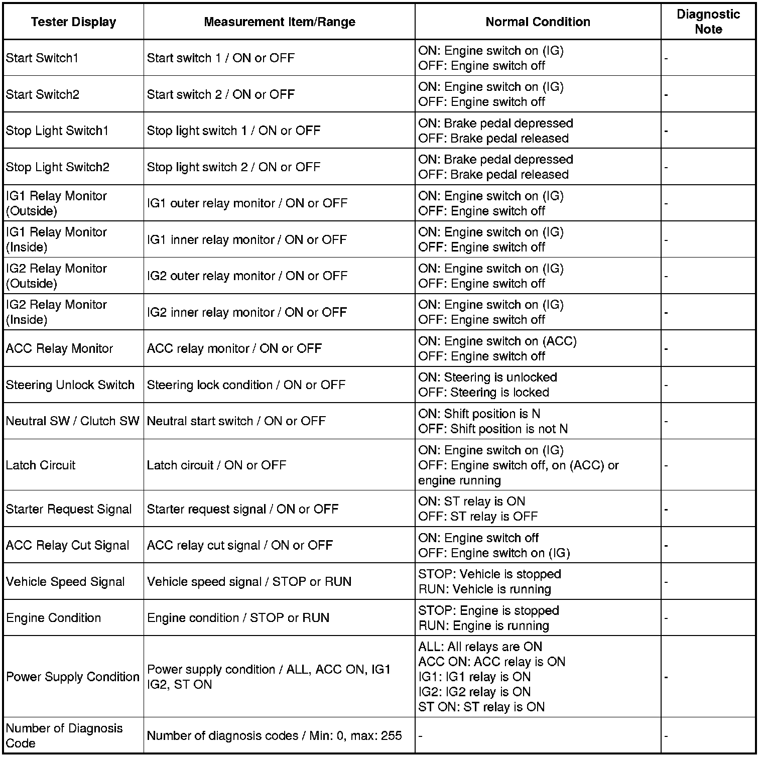 Using Techstream's Data List allows switch, sensor, actuator and other item values to be read without removing any parts. Reading the Data List relay in troubleshooting is one way to save time.