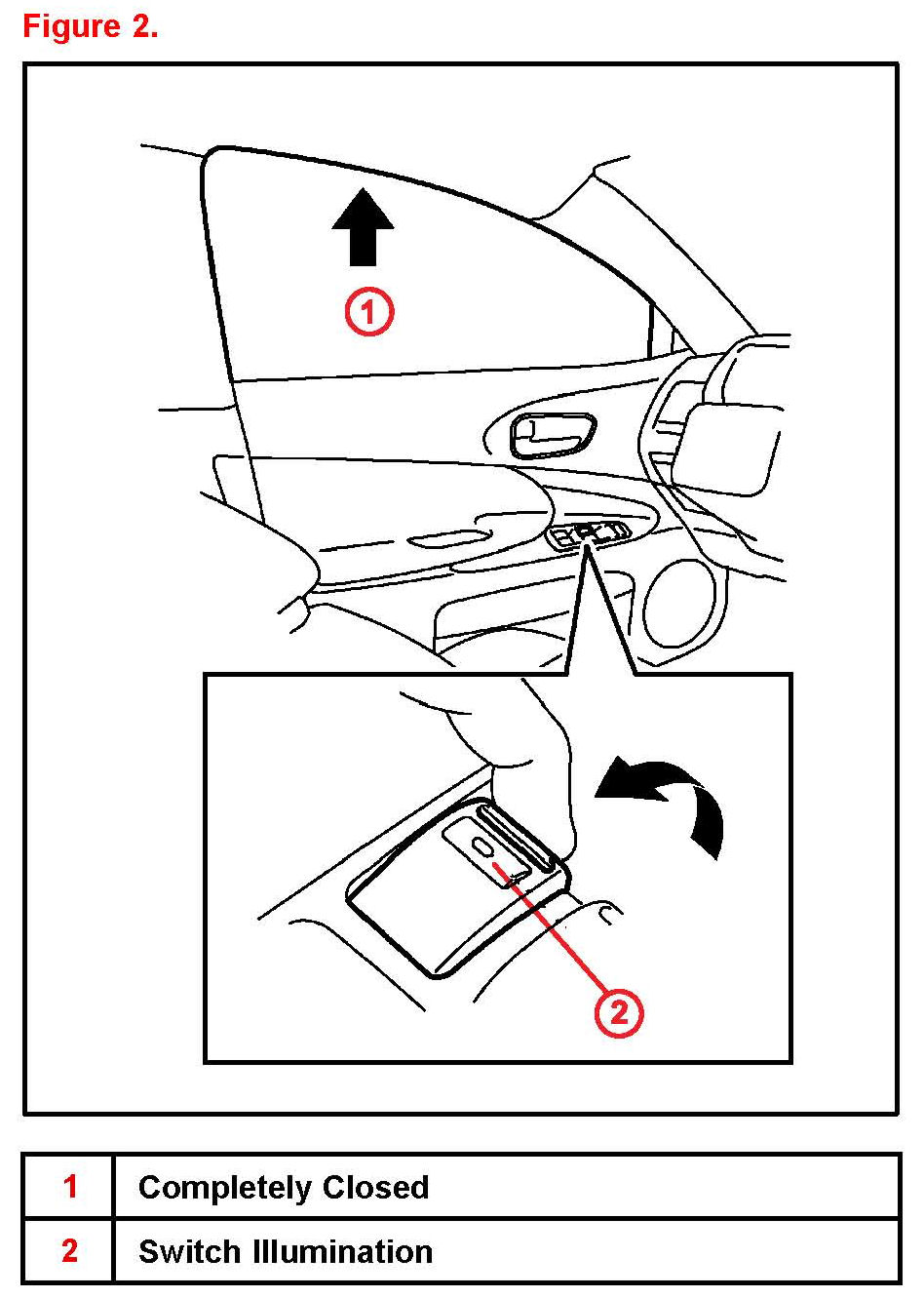3. Pull "UP" the driver's door power window switch until the window closes, and hold it for approximately one second.