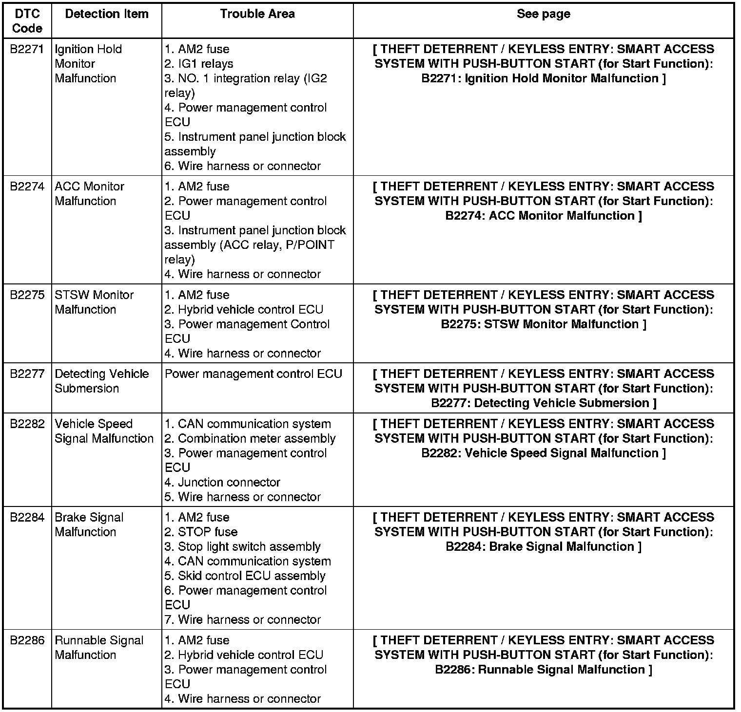 THEFT DETERRENT / KEYLESS ENTRY: SMART ACCESS SYSTEM WITH PUSH-BUTTON START (for Start Function): DIAGNOSTIC TROUBLE CODE CHART