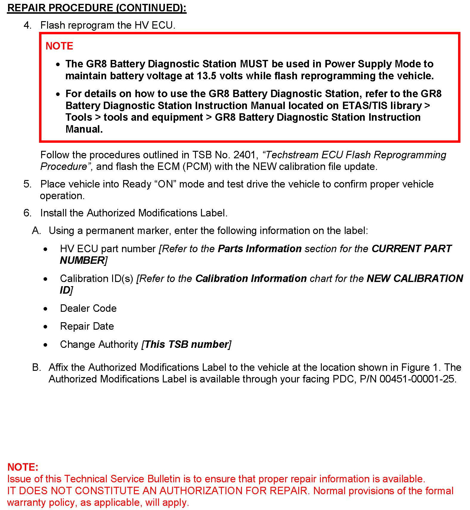 REPAIR PROCEDURE: