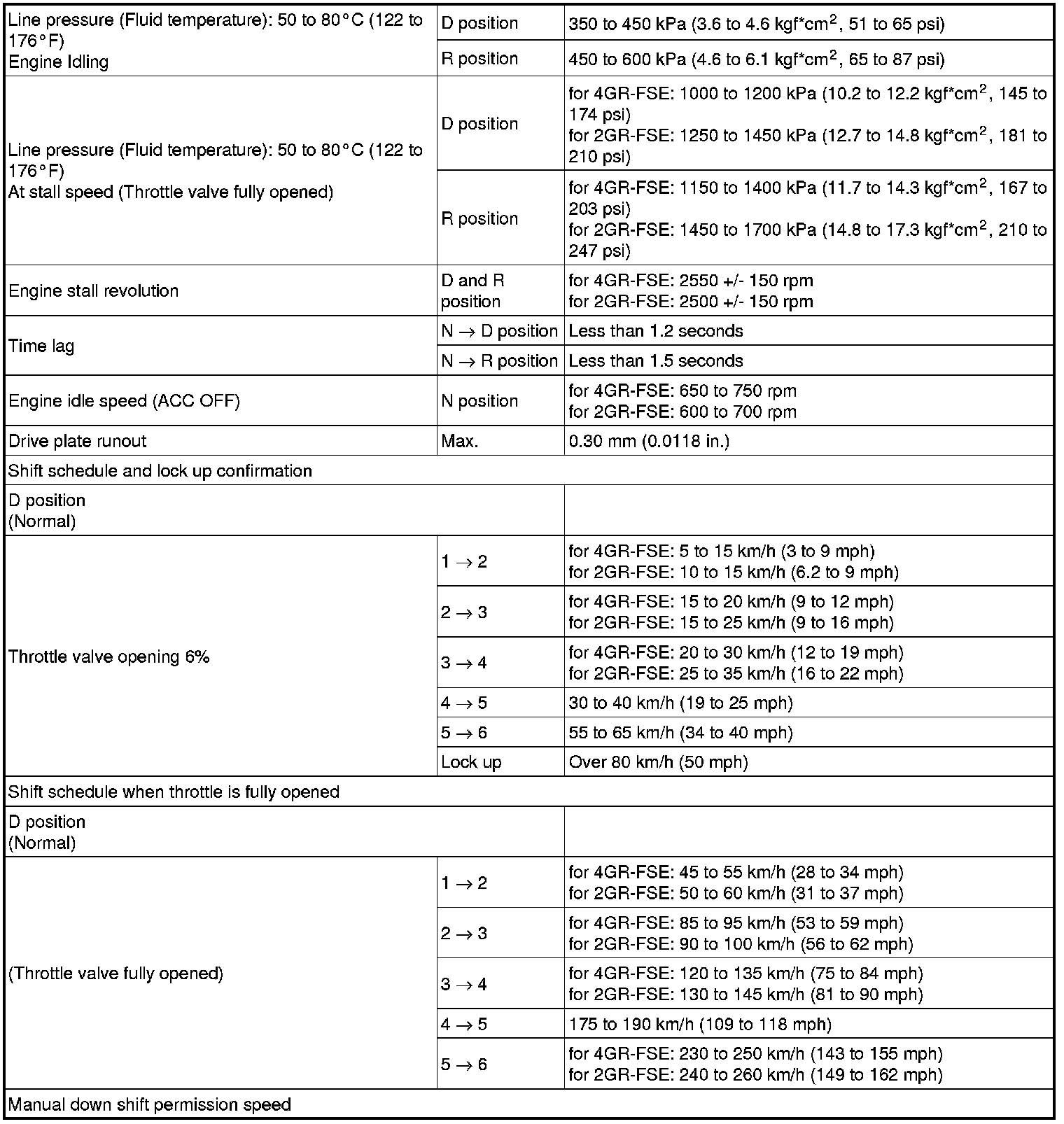 Home >> Lexus >> 2011 >> IS 250 AWD V6-2.5L (4GR-FSE) >> Repair and Diagnosis >> Specifications >> Mechanical Specifications >> Automatic Transmission/Transaxle >> System Specifications >> Service Data