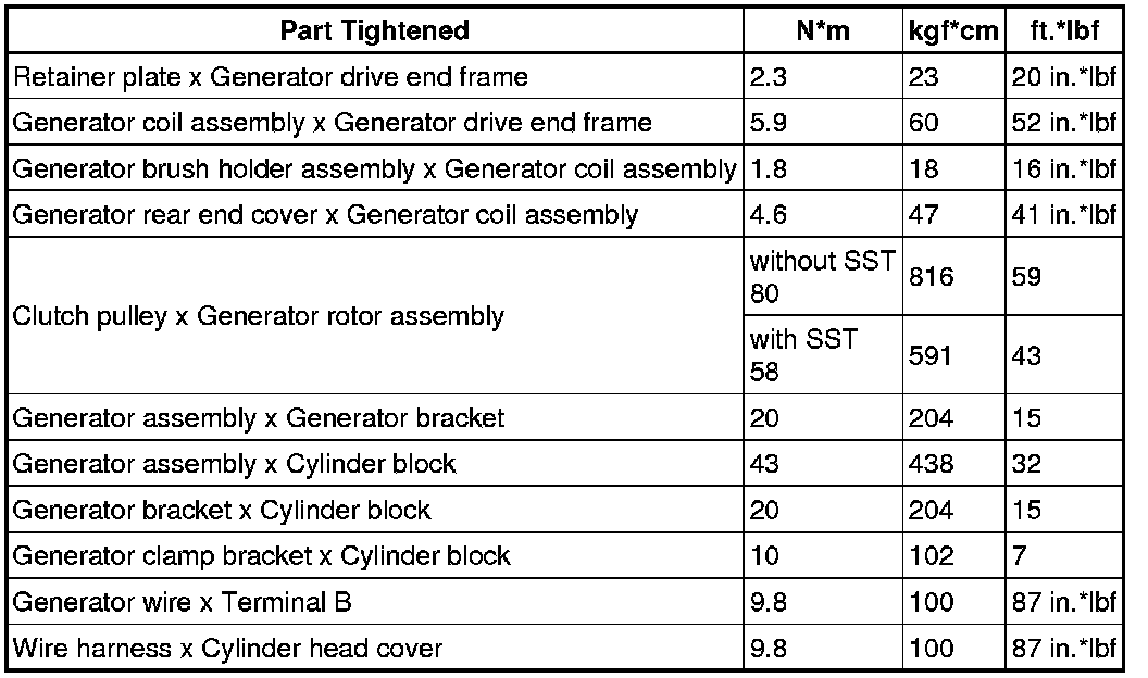 SERVICE SPECIFICATIONS: 4GR-FSE CHARGING: TORQUE SPECIFICATIONS
