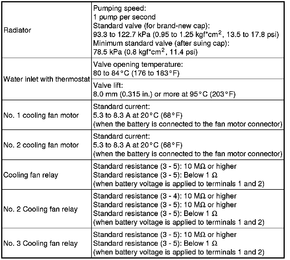 SERVICE SPECIFICATIONS: 4GR-FSE COOLING: SERVICE DATA