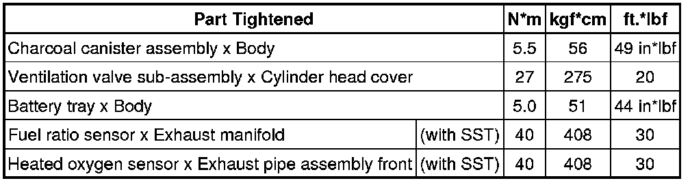 SERVICE SPECIFICATIONS: 4GR-FSE EMISSION CONTROL: TORQUE SPECIFICATIONS