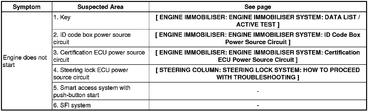 ENGINE IMMOBILIZER: ENGINE IMMOBILIZER SYSTEM: PROBLEM SYMPTOMS TABLE