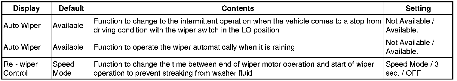 WIPER AND WASHER: WIPER AND WASHER SYSTEM: CUSTOMIZE PARAMETERS