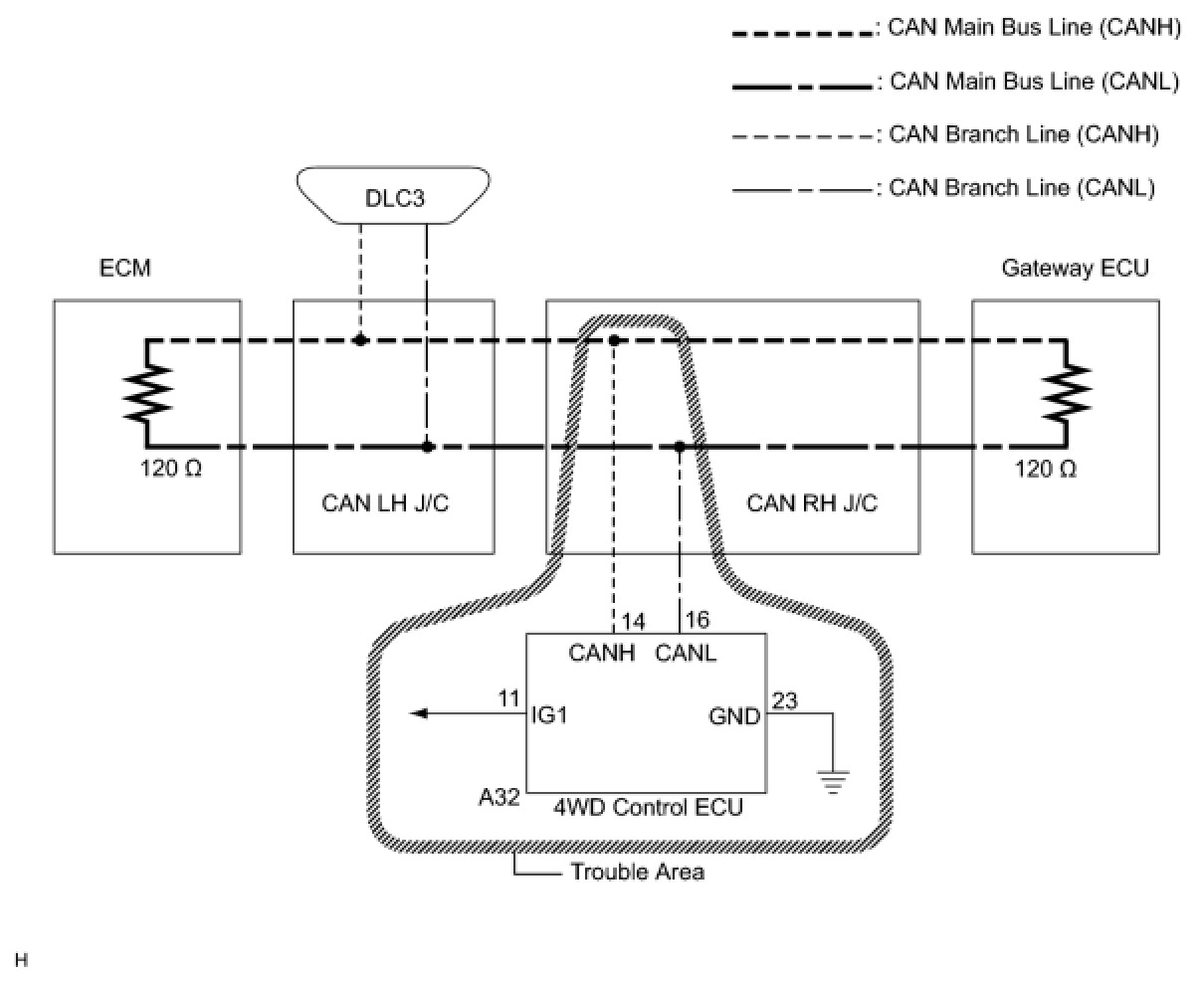 NG -- REPAIR OR REPLACE 4WD CONTROL ECU BRANCH LINE OR CONNECTOR (CANH, CANL)