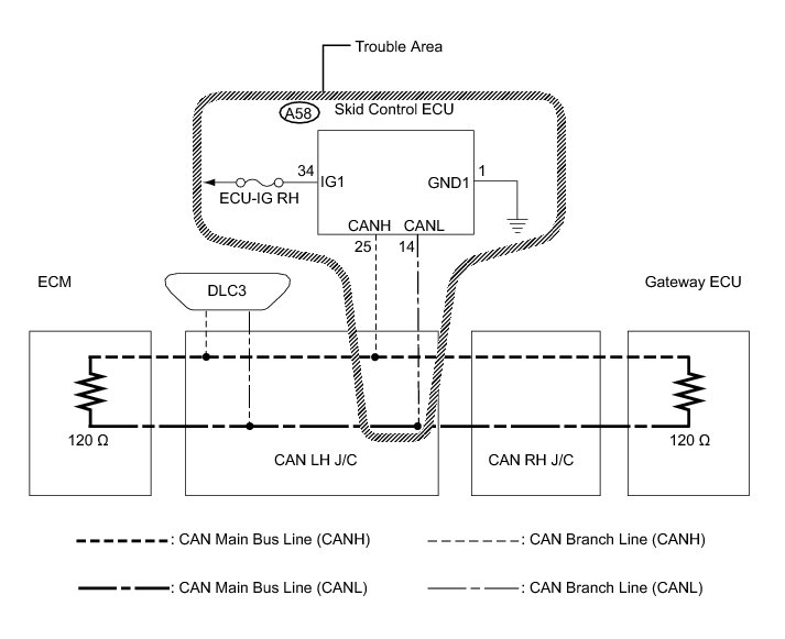 NG -- REPAIR OR REPLACE SKID CONTROL ECU BRANCH LINE OR CONNECTOR (CAN-H, CAN-L)