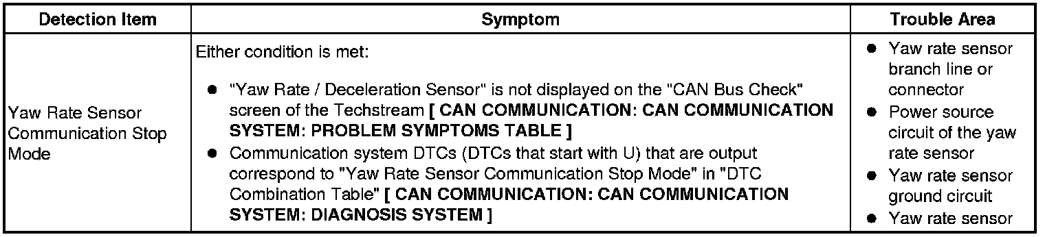 CAN COMMUNICATION: CAN COMMUNICATION SYSTEM: Yaw Rate Sensor Communication Stop Mode