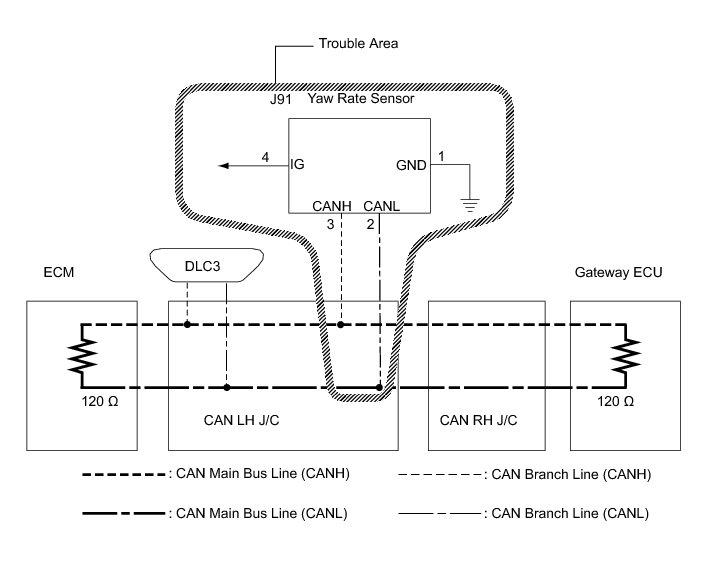 NG -- REPAIR OR REPLACE YAW RATE SENSOR BRANCH LINE OR CONNECTOR (CANH, CANL)