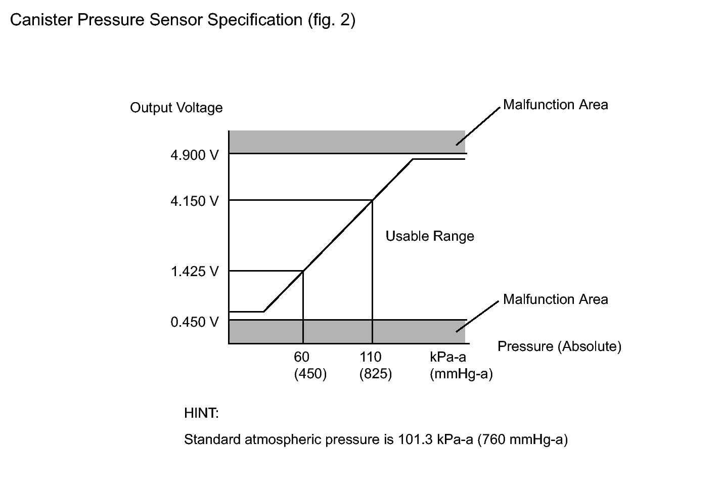 The vent valve is turned off (open) and the EVAP pressure is measured. If the variation in the pressure is less than 0.4 kPa (3 mmHg), the ECM interprets this as the purge VSV being stuck closed, illuminates the MIL and sets DTC P0441 (2 trip detection logic).