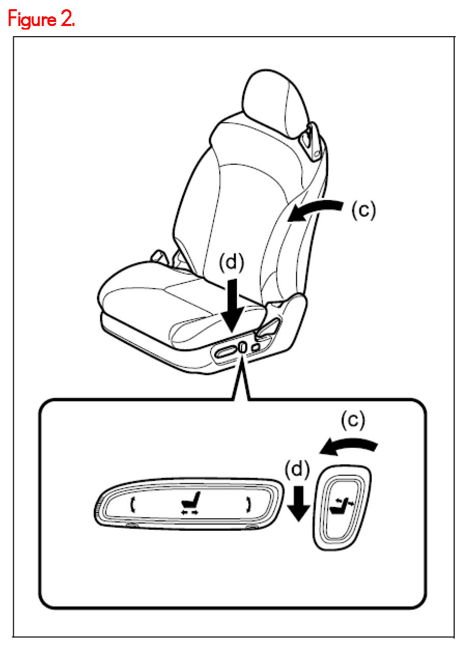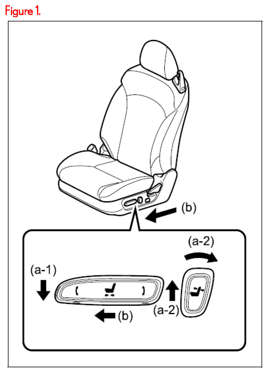 4. Push the seat position control switch forward, sliding the seat to the full forward or most forward position until a beep sound is emitted. Reference (b) in Figure 1.