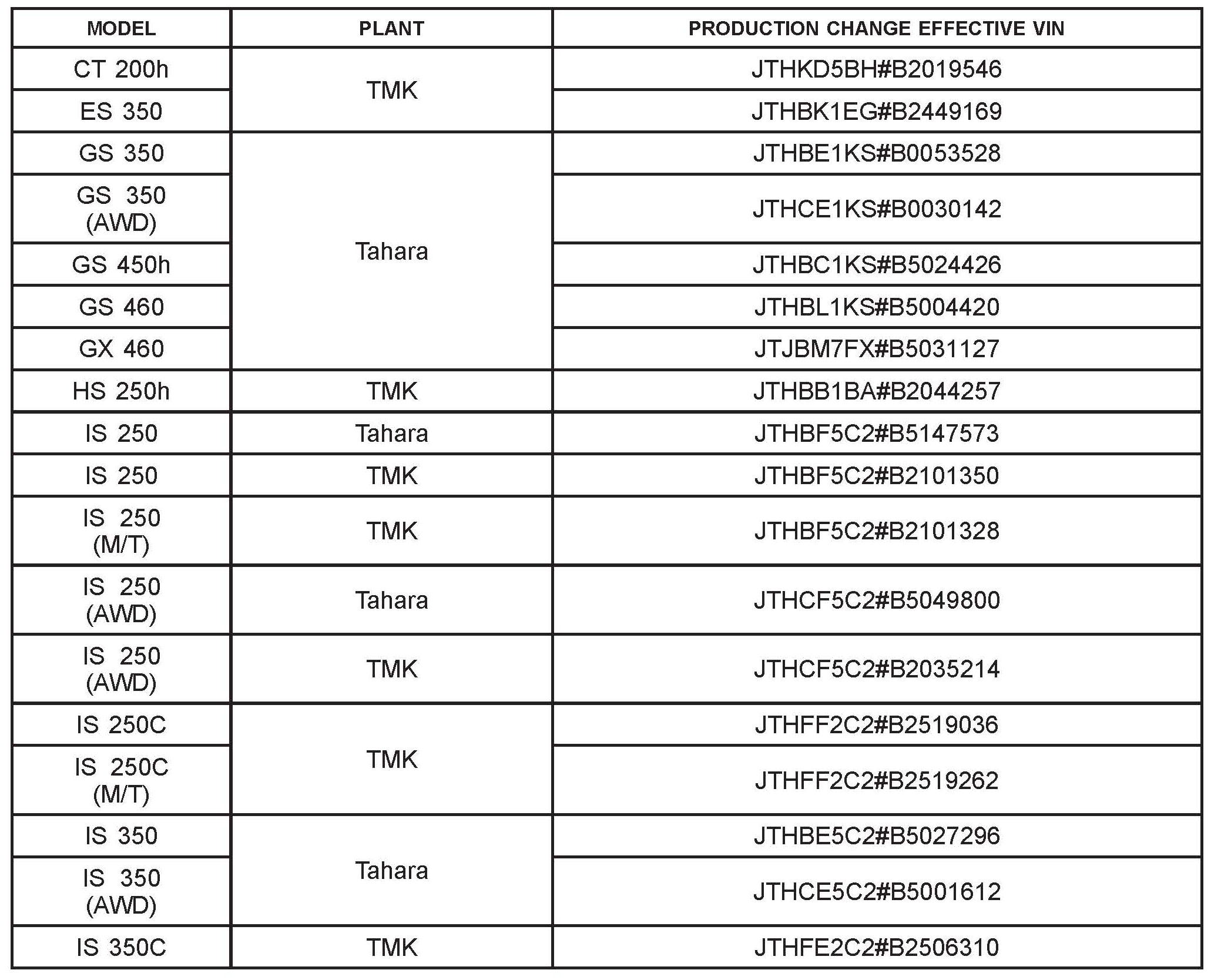 This TSIB applies to all 2010 SC 430 vehicles with navigation systems and to vehicles produced BEFORE the Production Change Effective VINs shown.