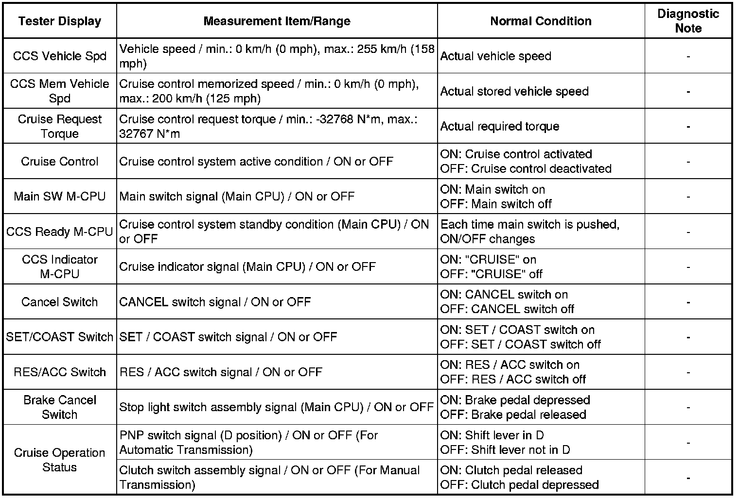 CRUISE CONTROL: CRUISE CONTROL SYSTEM: DATA LIST / ACTIVE TEST