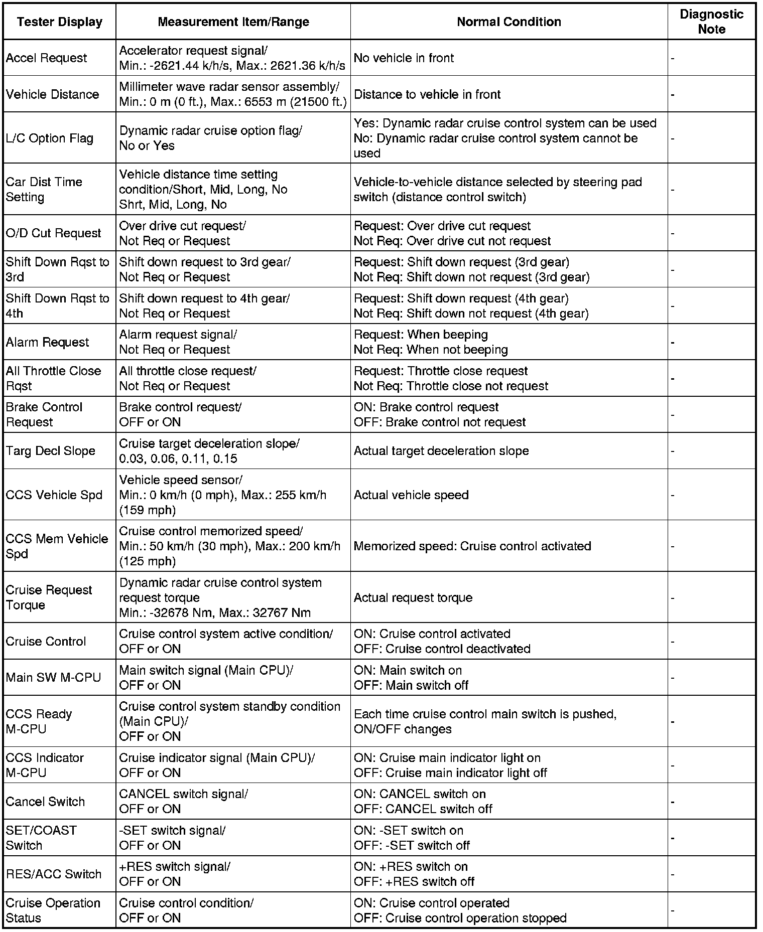 CRUISE CONTROL: DYNAMIC RADAR CRUISE CONTROL SYSTEM: DATA LIST / ACTIVE TEST