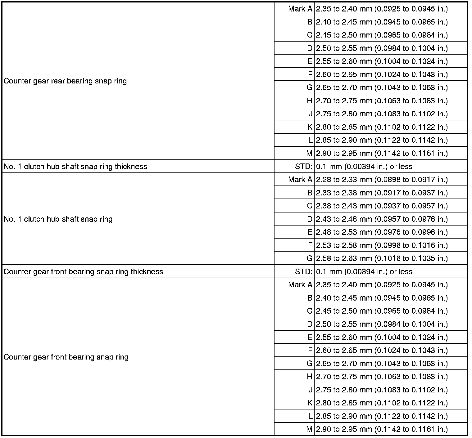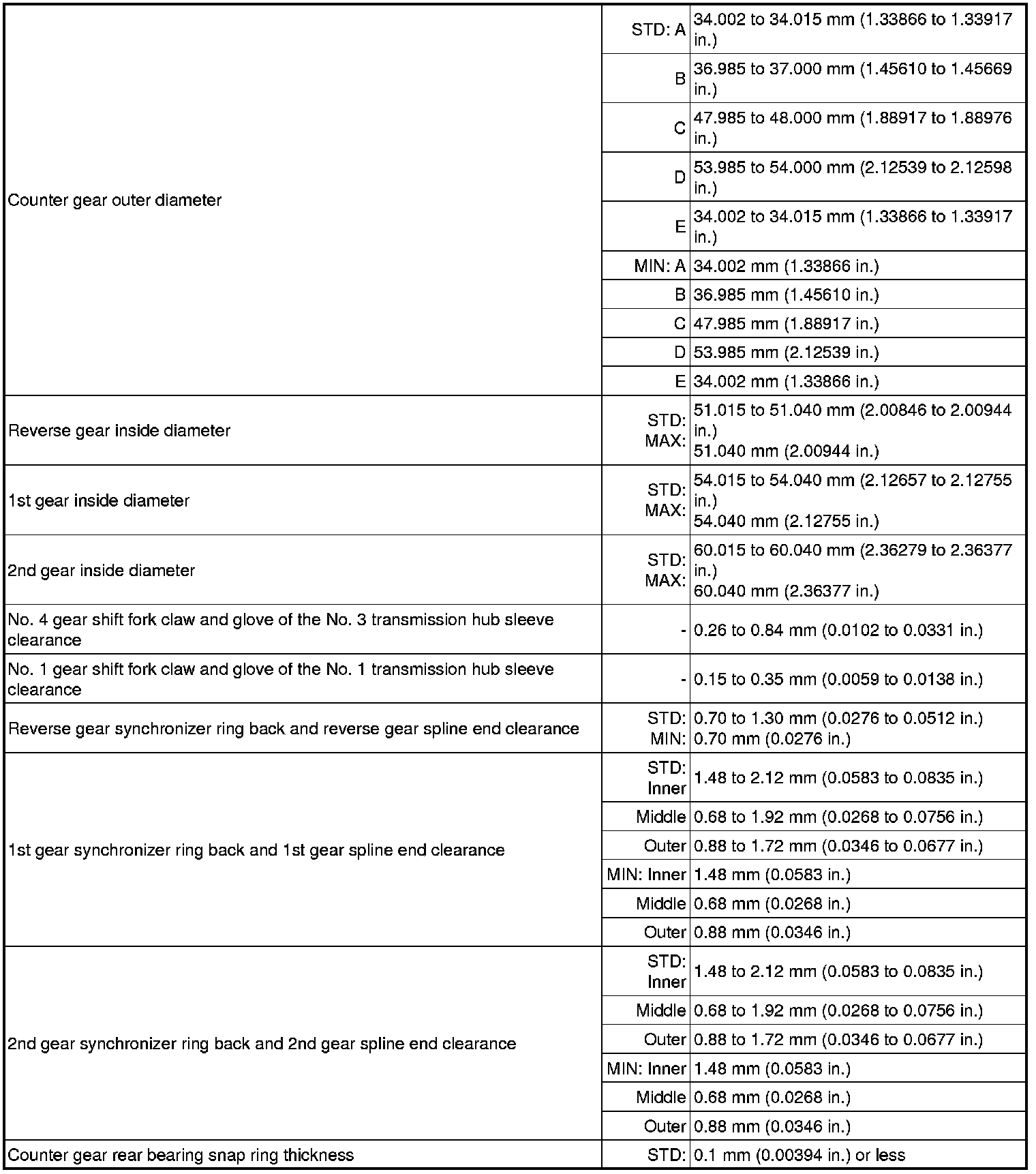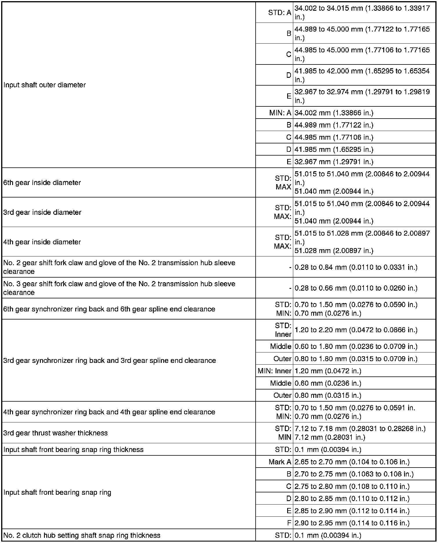 SPECIFICATIONS: RA62 MANUAL TRANSMISSION / TRANSAXLE: SERVICE DATA