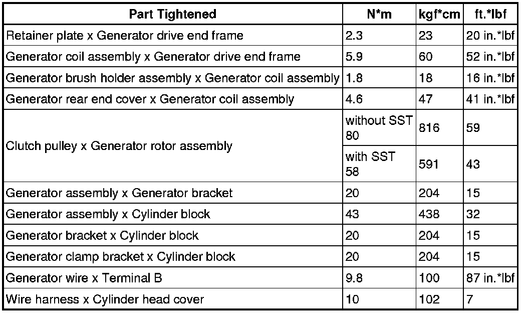 SPECIFICATIONS: 4GR-FSE BATTERY / CHARGING: TORQUE SPECIFICATIONS