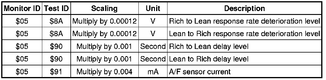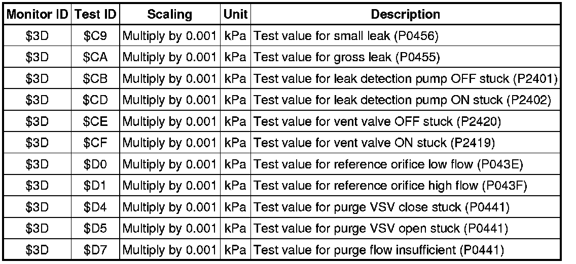 When using a generic scan tool, multiply the test value by the scaling value listed below.