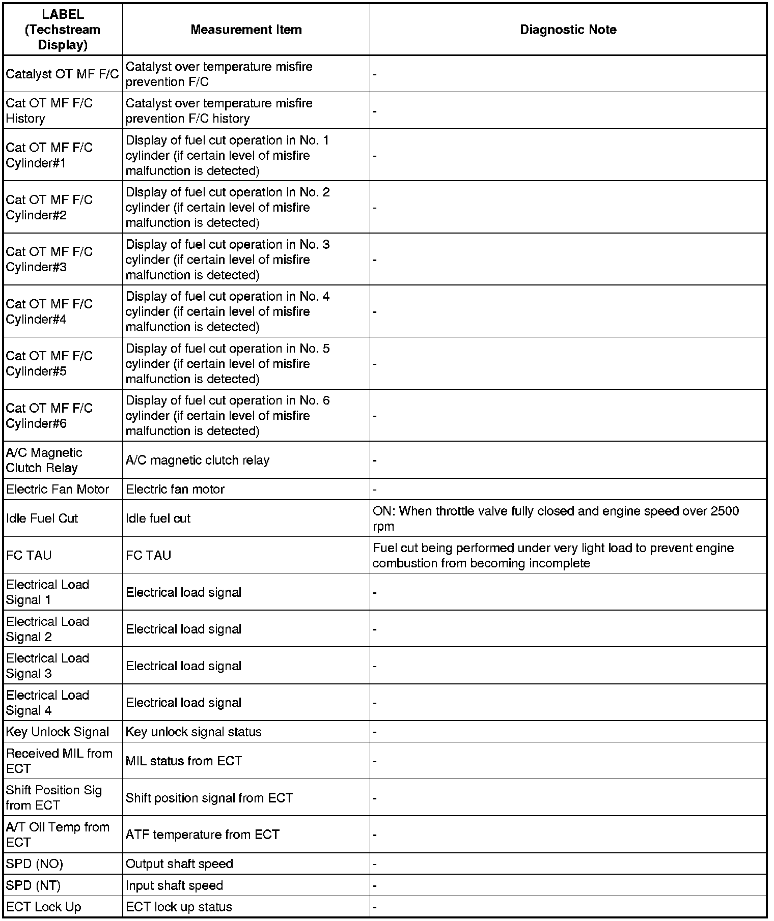 2GR-FSE ENGINE CONTROL SYSTEM: SFI SYSTEM: FREEZE FRAME DATA