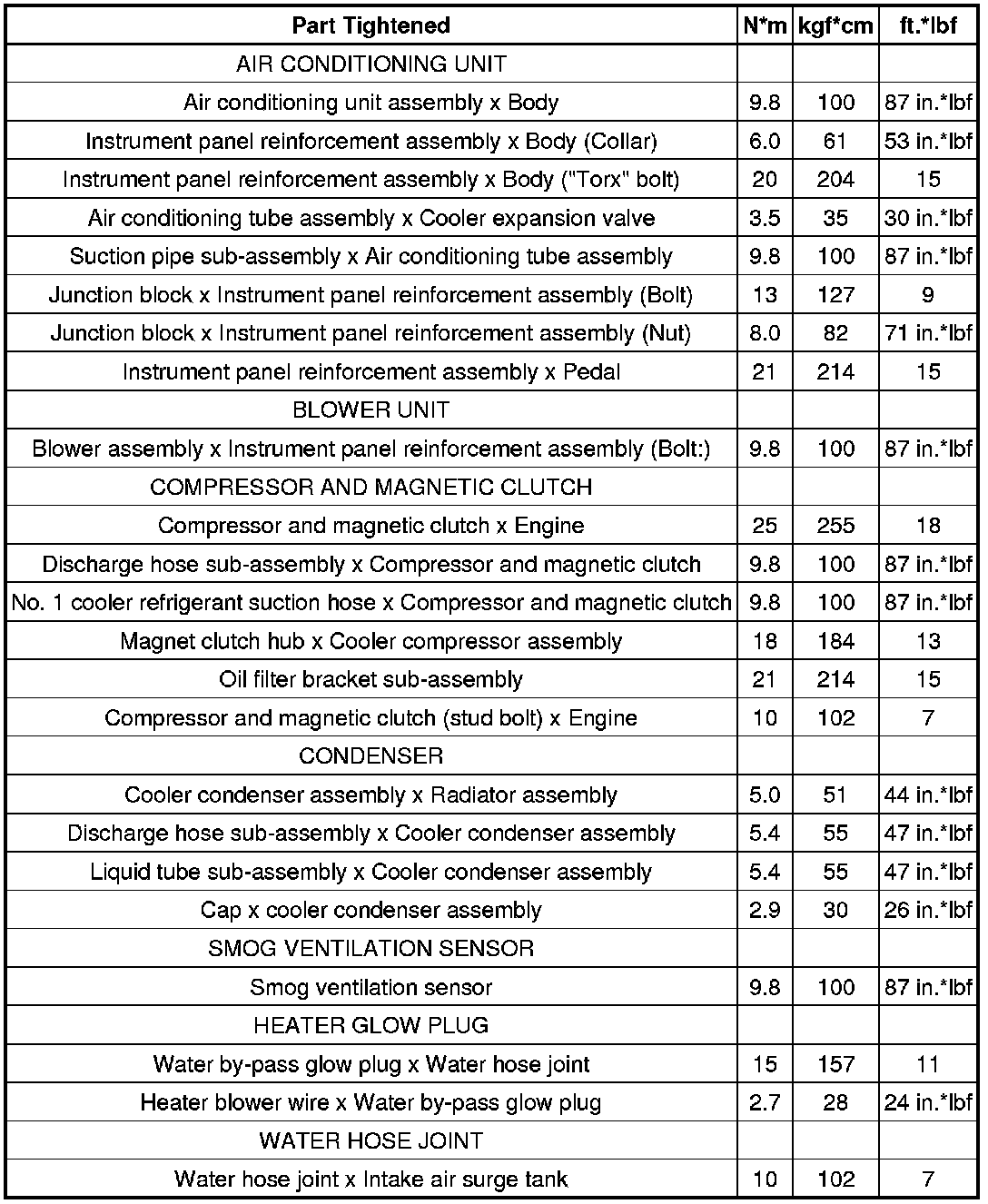 SERVICE SPECIFICATIONS: AIR CONDITIONING: TORQUE SPECIFICATIONS