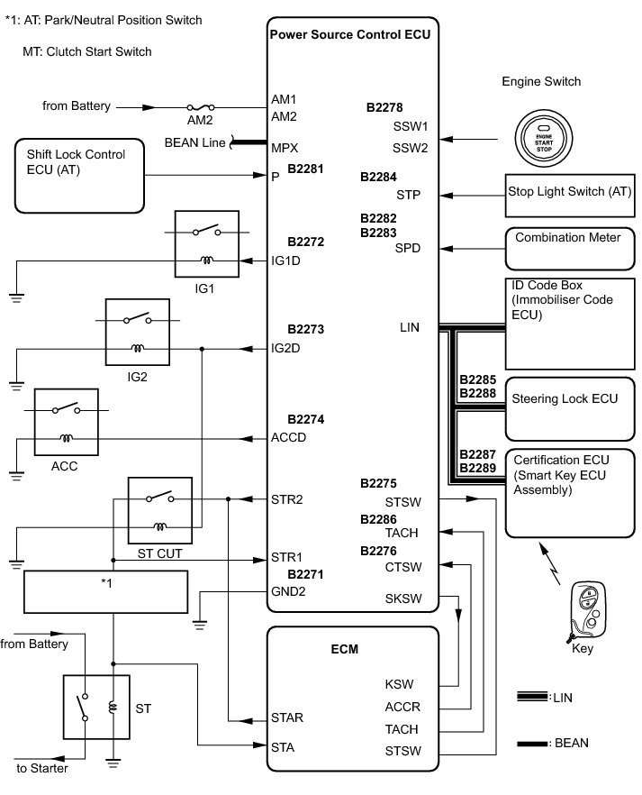 (a) If there is a malfunction in the stop light switch or STOP fuse, their signals may not be correctly transmitted to the power source control ECU. This may result in the engine not starting even if the engine switch is pressed while the brake pedal is depressed and the shift lever is in P.