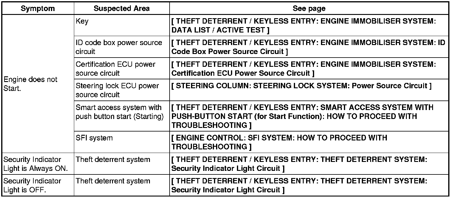 THEFT DETERRENT / KEYLESS ENTRY: ENGINE IMMOBILIZER SYSTEM: PROBLEM SYMPTOMS TABLE