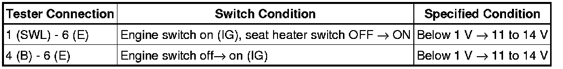 SEAT: SEAT HEATER CONTROL: INSPECTION
