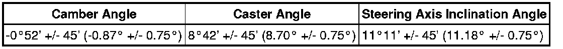 * The maximum tolerance of right and left difference for the camber and caster is 30' (0.5°) or less.