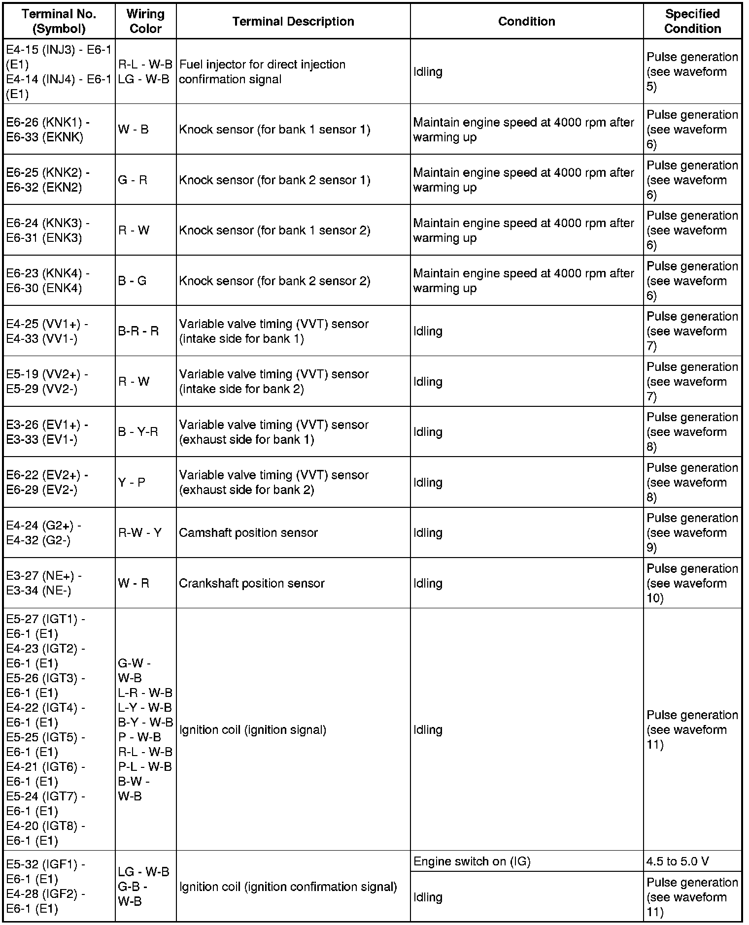 Home >> Lexus >> 2011 >> IS F V8-5.0L (2UR-GSE) >> Repair and Diagnosis >> Powertrain Management >> Computers and Control Systems >> Engine Control Module >> Testing and Inspection >> Pinout Values and Diagnostic Parameters
